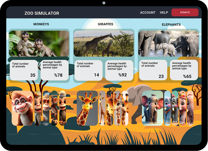 Zoo Simulator is an interactive, gamified dashboard that allows users to explore, monitor, and care for virtual zoo animals.